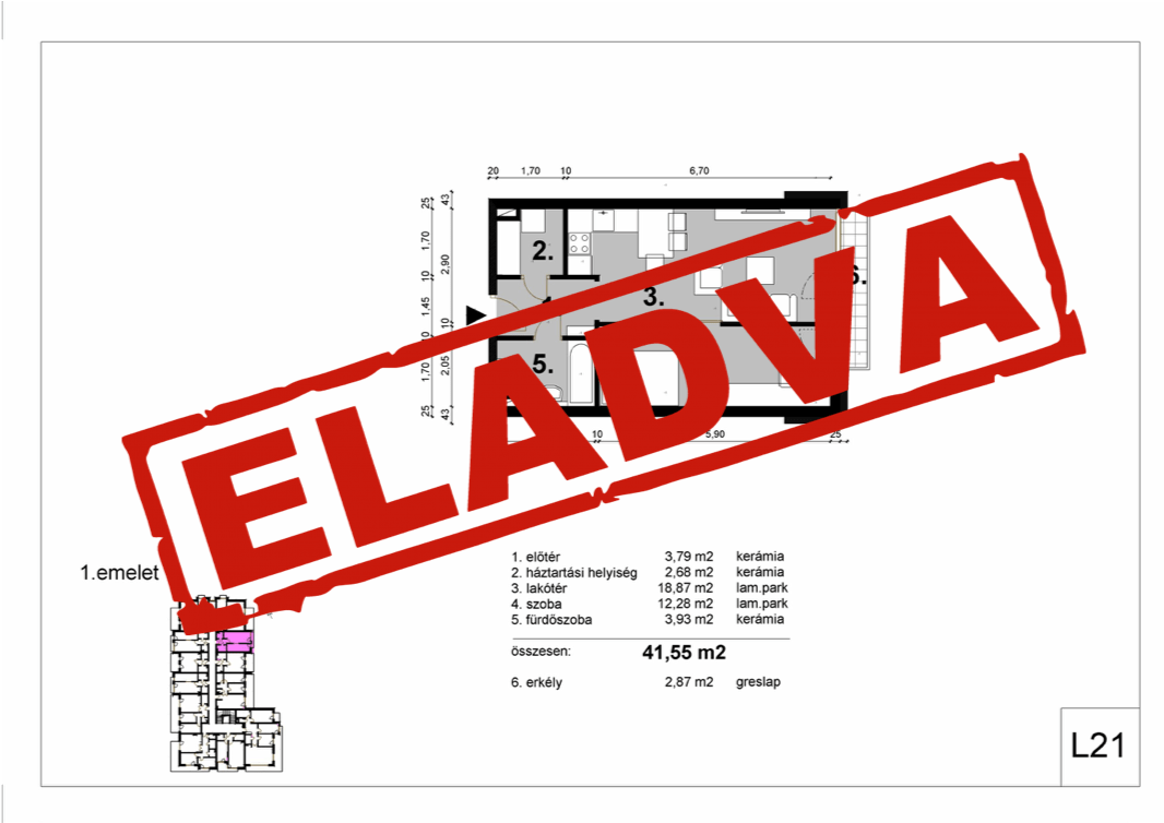 A jelen adatok tájékoztató jellegűek, ezért a Beruházó azok változásával, vagy bármely attól való eltéréssel kapcsolatban semmilyen kötelezettséget, vagy felelősséget nem vállal. Az ábrázolt berendezési tárgyak és bútorok, a burkolatok megjelenése nem képezi a szerződés tárgyát. A pontos felszereltség műszaki leírás szerint. A területek burkolatlan felületekre értendőek. A nettó területek helyiségeknek a falak közötti területei. A bruttó területek tartalmazzák a válaszfalak alatti területet. Jelen rajzon szereplő méretek a kiviteli tervek szerint módosulhatnak.