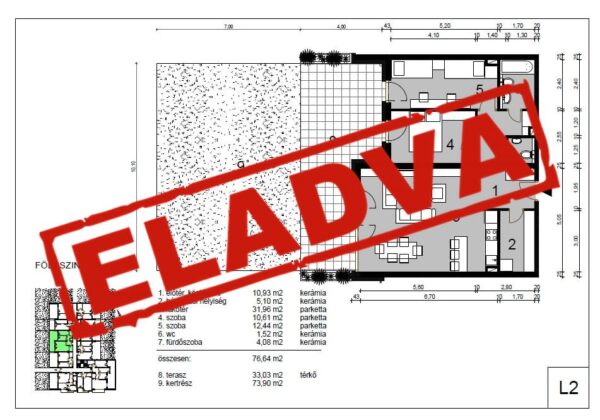 A jelen adatok tájékoztató jellegűek, ezért a Beruházó azok változásával, vagy bármely attól való eltéréssel kapcsolatban semmilyen kötelezettséget, vagy felelősséget nem vállal. Az ábrázolt berendezési tárgyak és bútorok, a burkolatok megjelenése nem képezi a szerződés tárgyát. A pontos felszereltség műszaki leírás szerint. A területek burkolatlan felületekre értendőek. A nettó területek helyiségeknek a falak közötti területei. A bruttó területek tartalmazzák a válaszfalak alatti területet. Jelen rajzon szereplő méretek a kiviteli tervek szerint módosulhatnak.